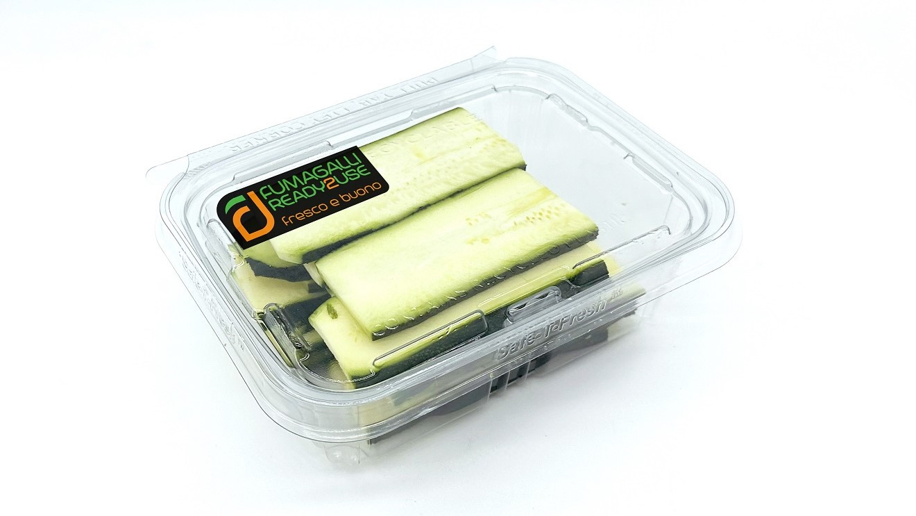 Zucchine a fette pronte da cuocere.