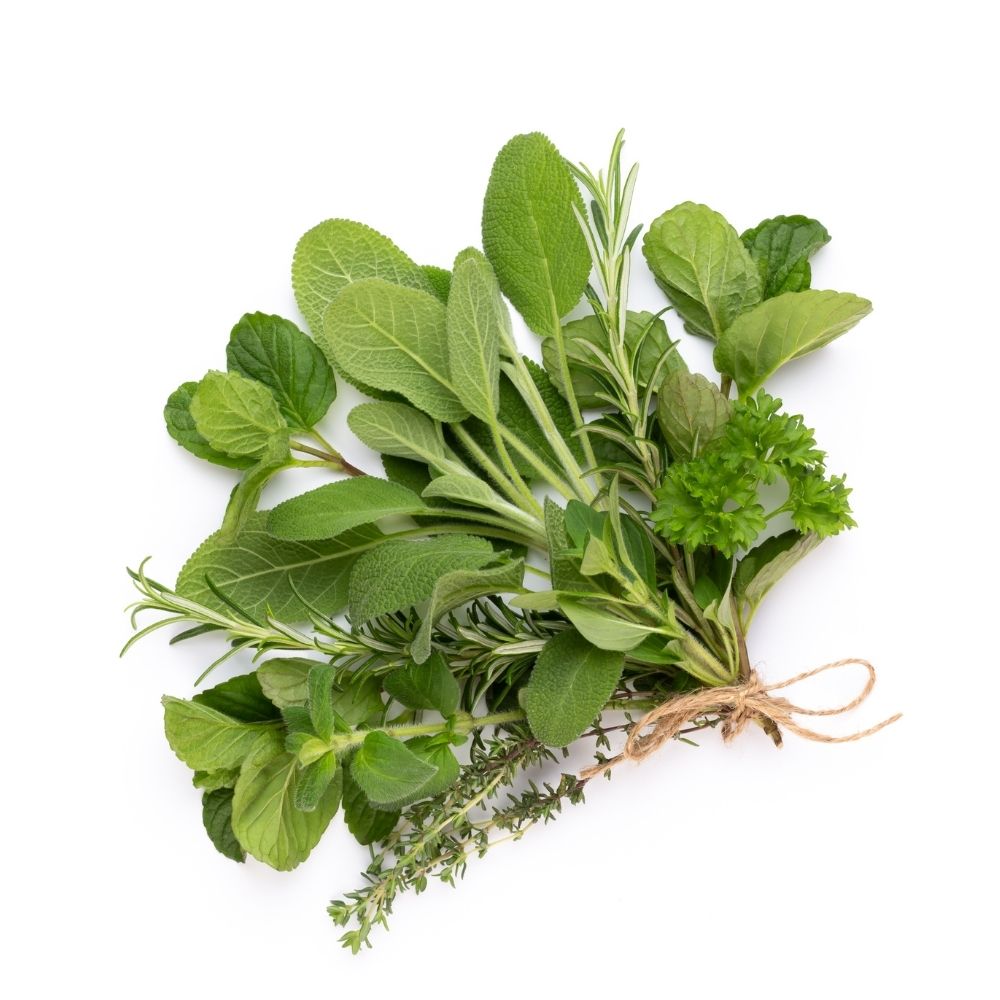 1 vaschetta di basilico 30gr, 1 vaschetta di menta 100gr, 50gr salvia sfusa, 50gr rosmarino sfuso, 1 vaschetta di alloro 20gr, 1 busta origano secco in ramo.